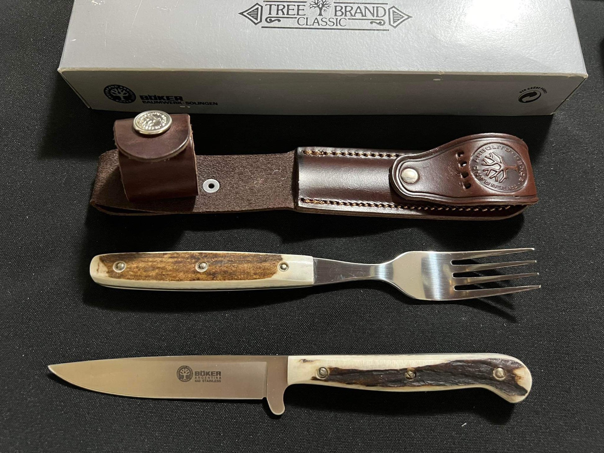 Boker Arbolito, Set de Cuchillo y Tenedor, Mango de Asta de Ciervo