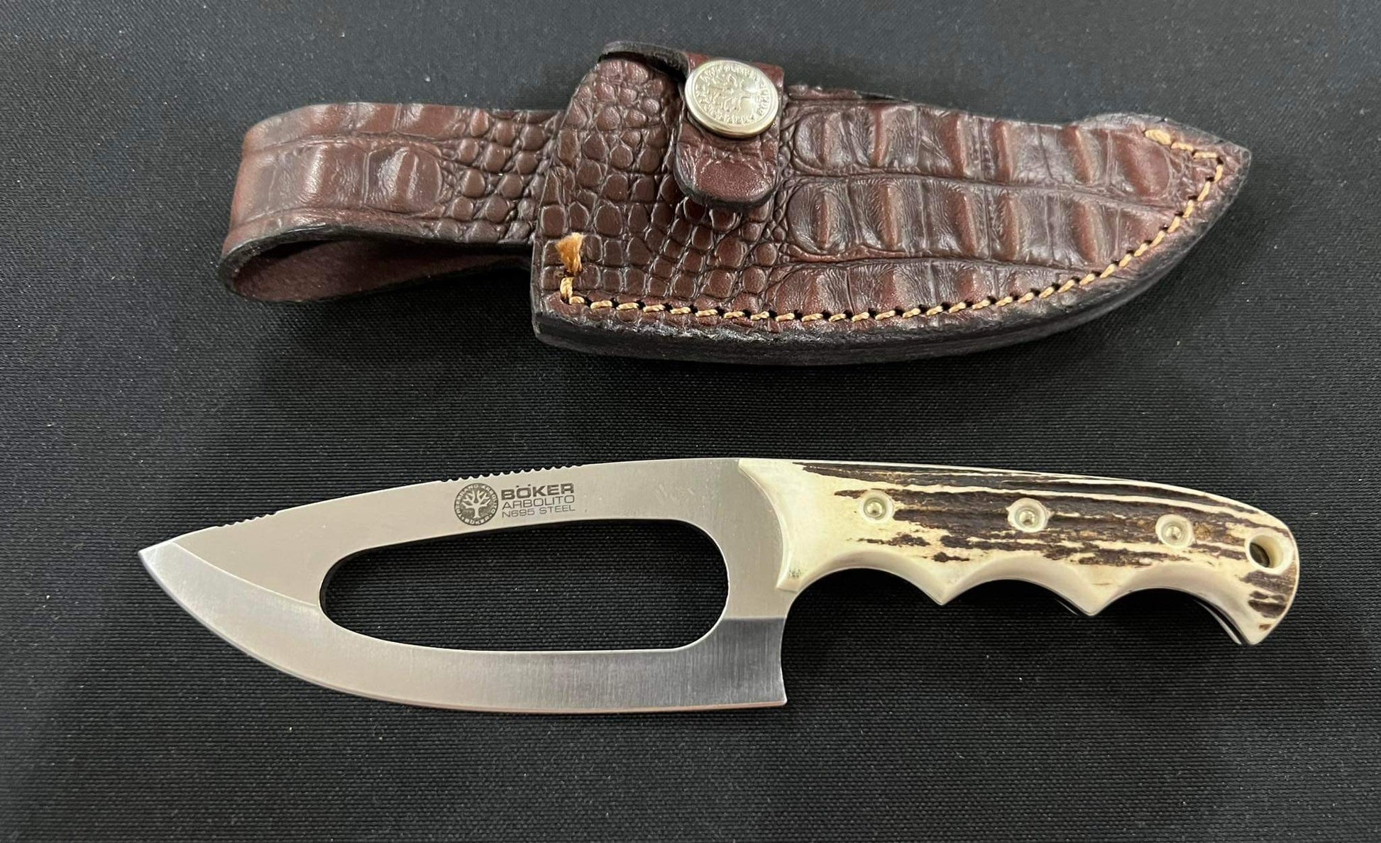 Cuchillo Böker Arbolito, 7 pulgadas largo total, Mango de Asta de ciervo, Incluye Funda de Piel.
