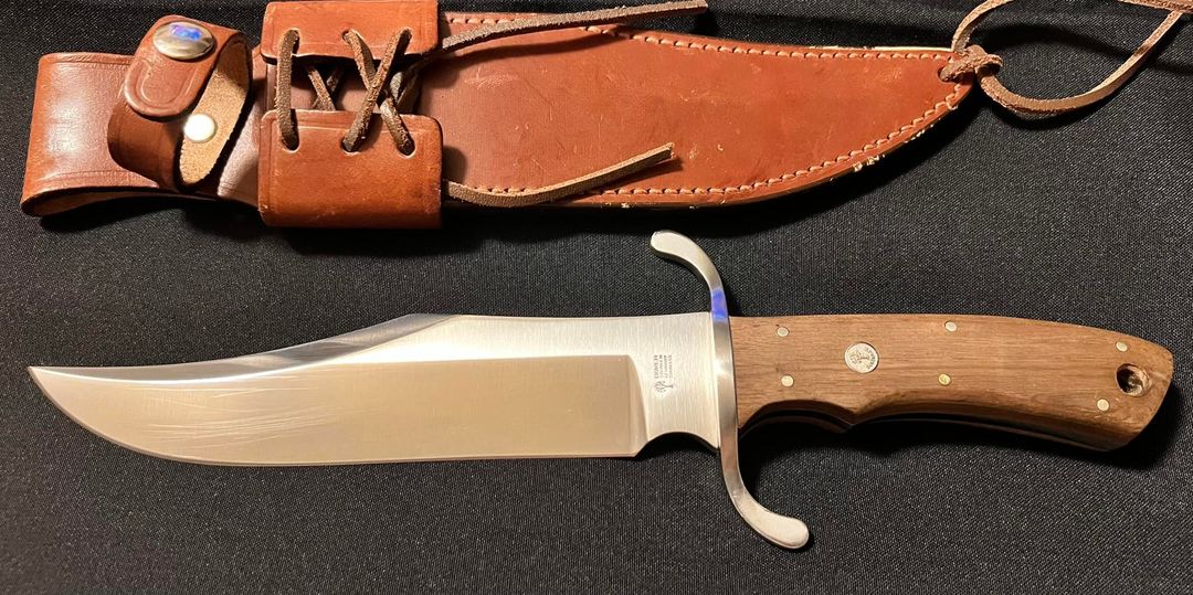 Cuchillo Bowie Böker, Hecho en Solingen Alemania, 12.6 pulgadas largo total, Mango de Nogal Eurpoeo, Acero Inoxidable 4034, Incluye Funda de Piel, nuevo sin caja.