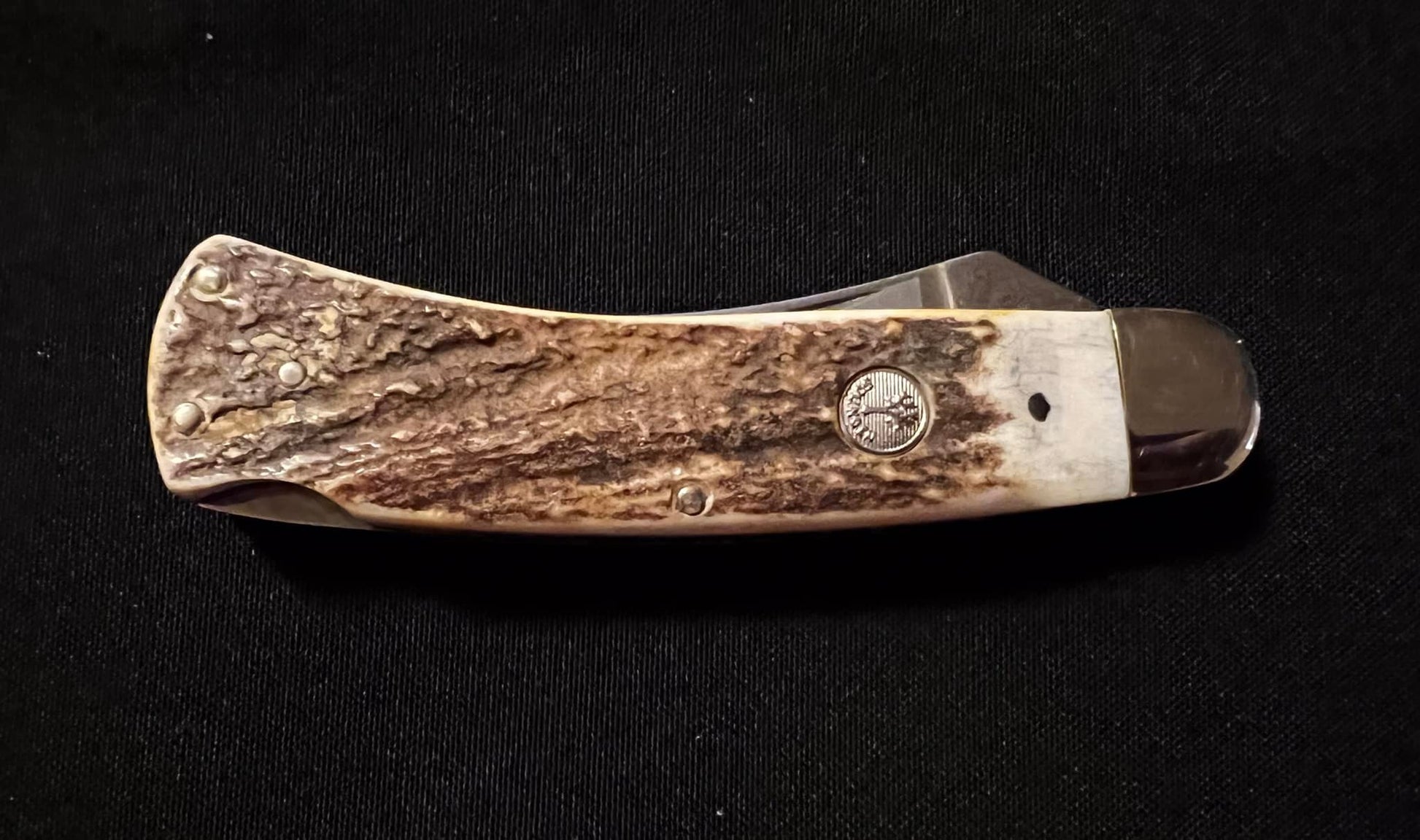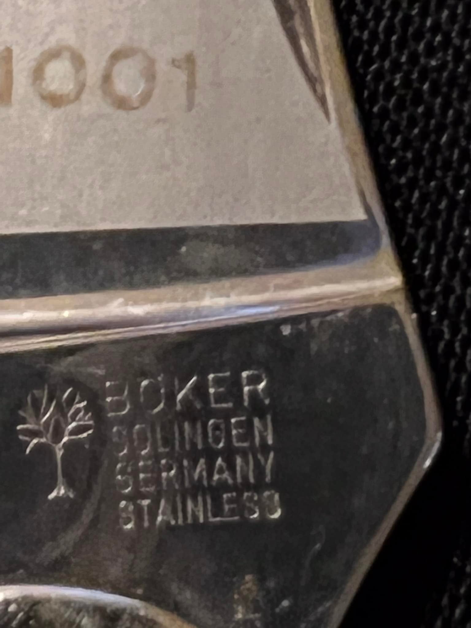 Navaja Böker 1001, Cachas de Asta de Ciervo, 7.6 pulgadas largo total, Acero Inoxidable, Hecha en Solingen Alemania, nueva sin caja.