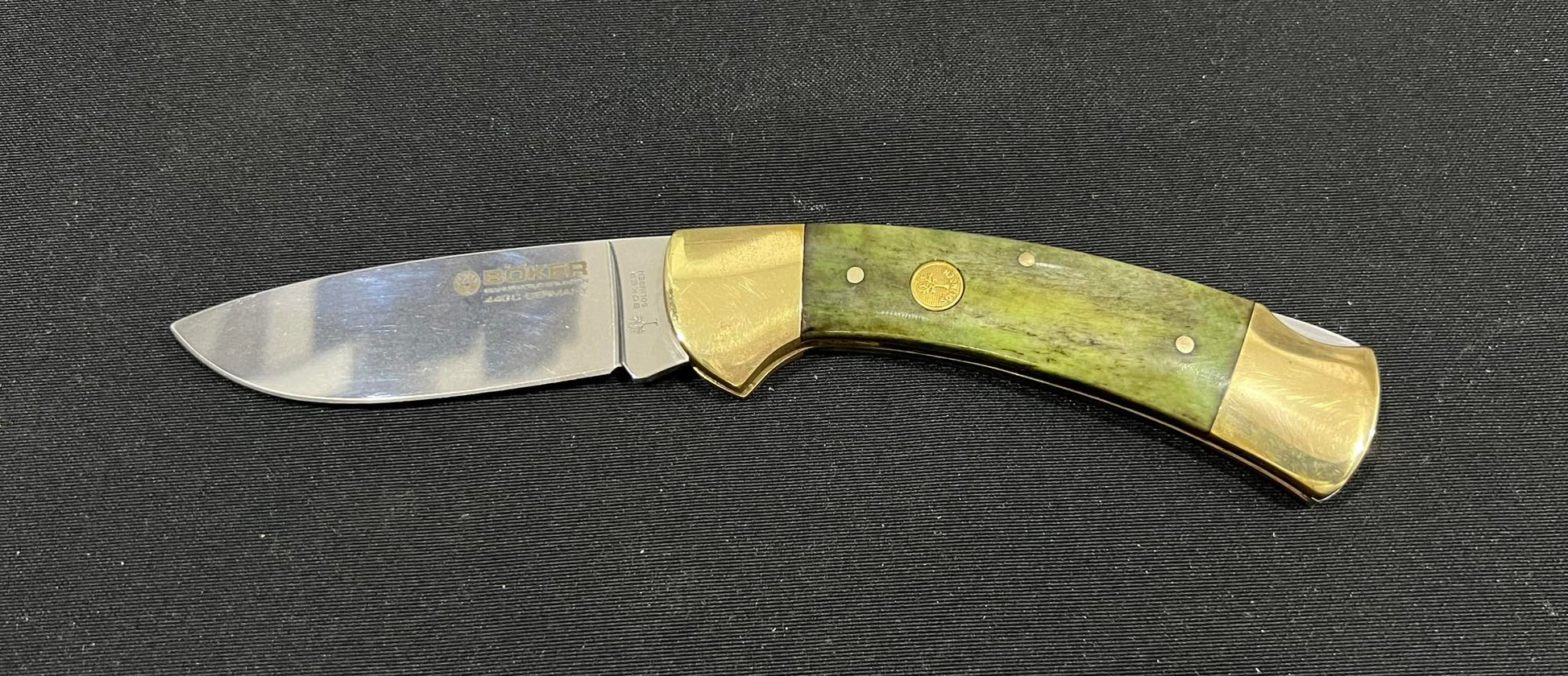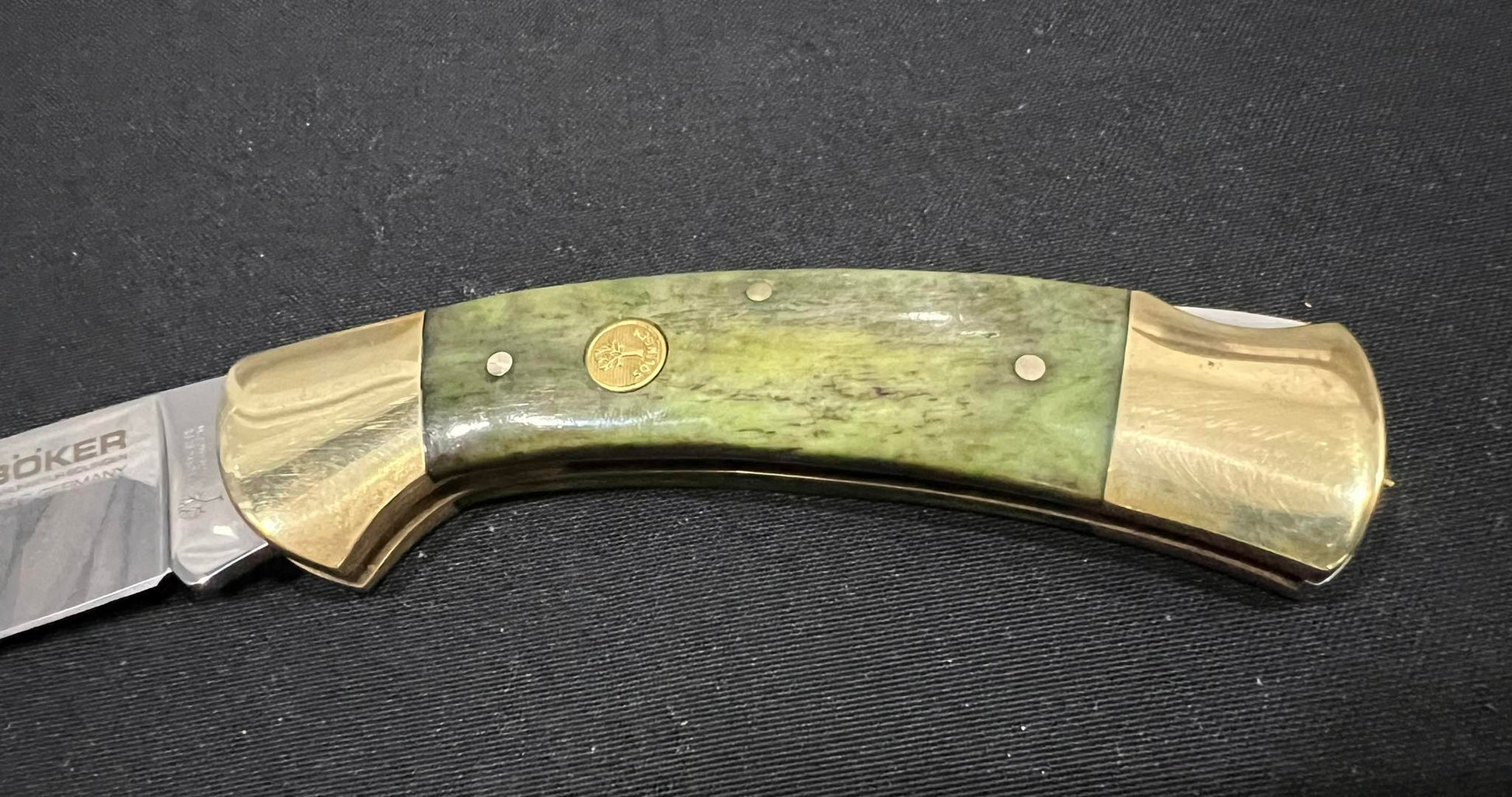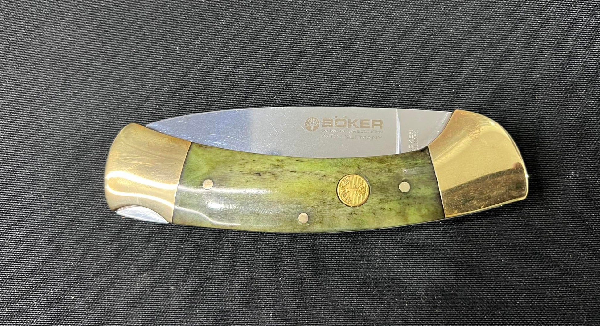 Navaja Boker 3000, Cachas de Hueso Verde, 8 pulgadas largo total, Acero 440C, Hecha en Solingen Alemania, nueva sin caja.