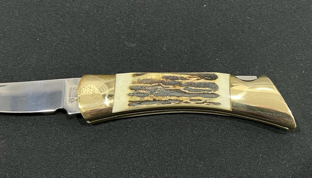 Navaja Boker, Cachas de Asta de Ciervo, Acero Inoxidable, 7.6 pulgadas largo total, Hecha en Solingen Alemania, nueva sin caja.