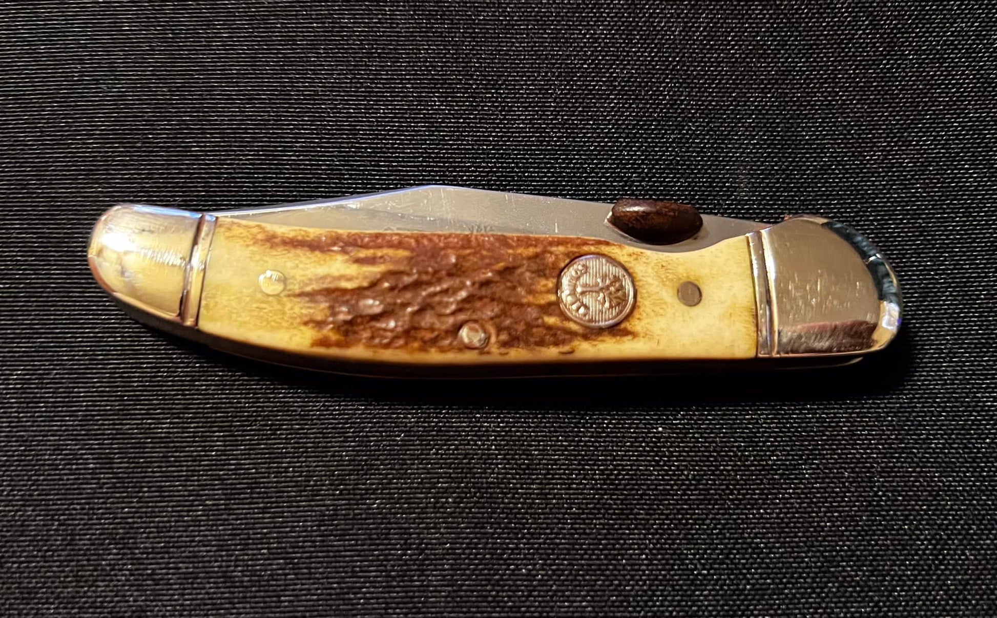 Navaja Böker, Hecha en Solingen Alemania, 6.5 pulgadas largo total, Cachas de Asta de Ciervo, Acero Inoxidable Acabado Espejo, nueva sin caja.