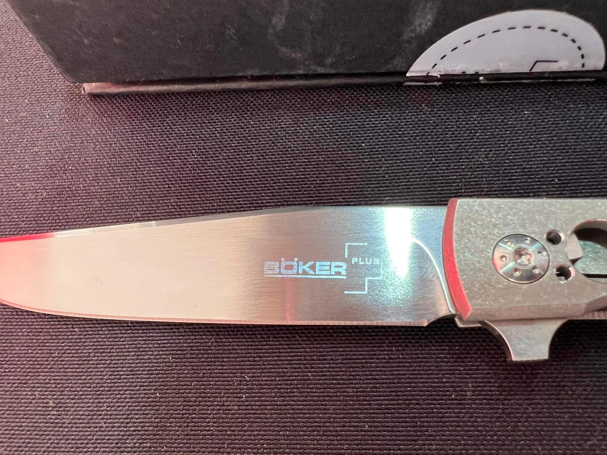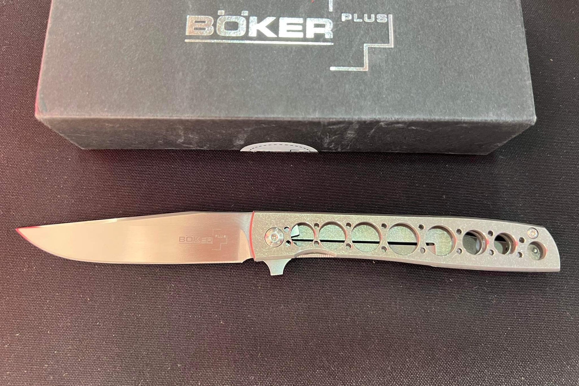 Navaja Boker Plus Urban Trapper, 7.7 pulgadas largo total, Acero VG-10, Mango de Titanio, Clip, nueva en caja.