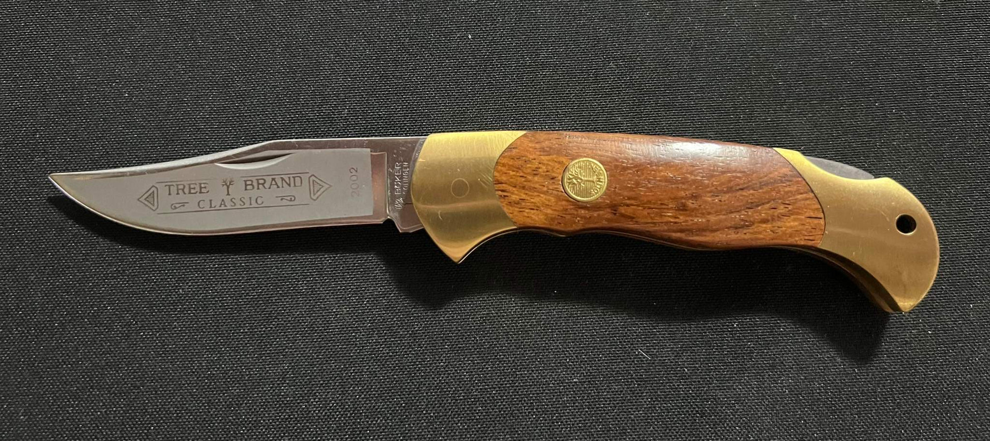 Navaja Boker Scout, Hecha en Solingen Alemania, 7.2 pulgadas largo total, Acero Inoxidable, Cachas de Madera de Palo de Rosa.