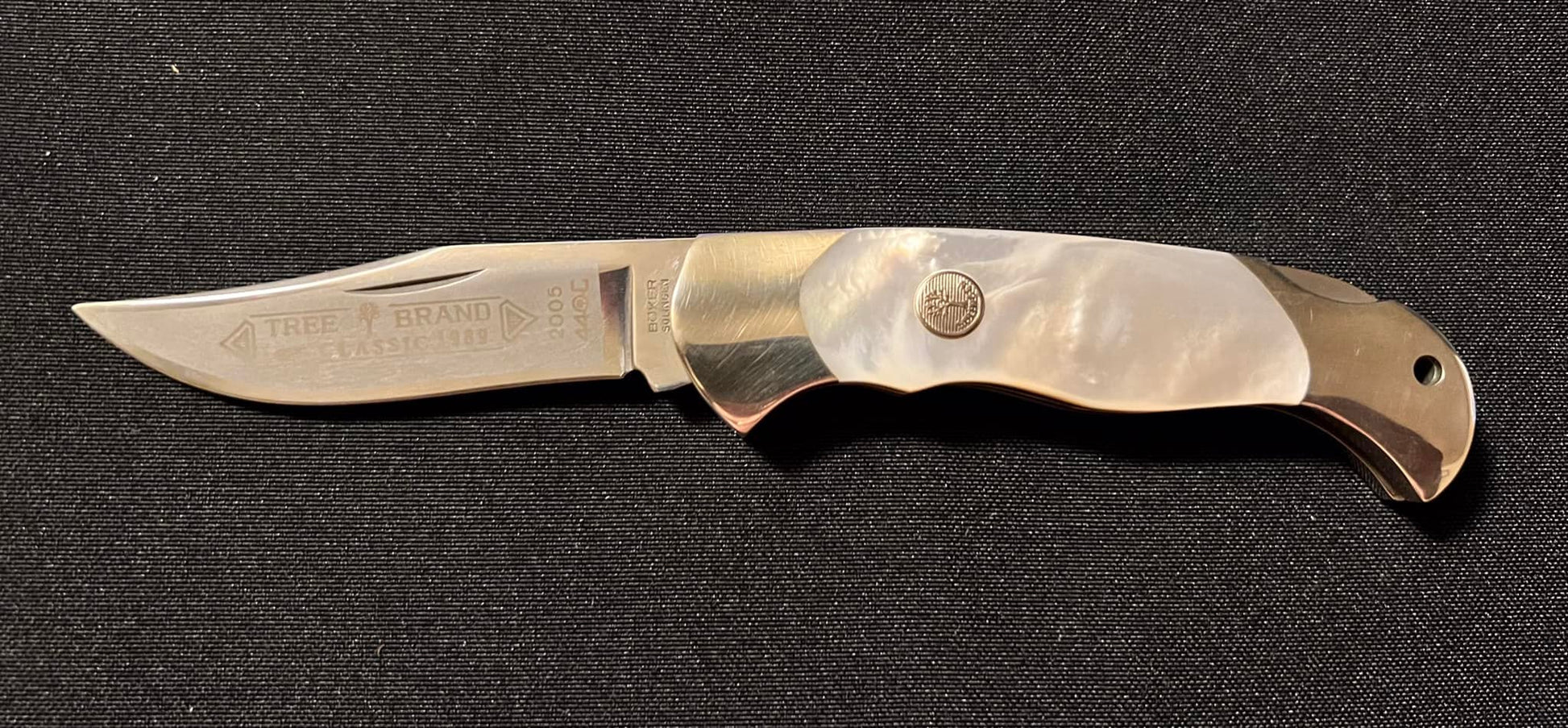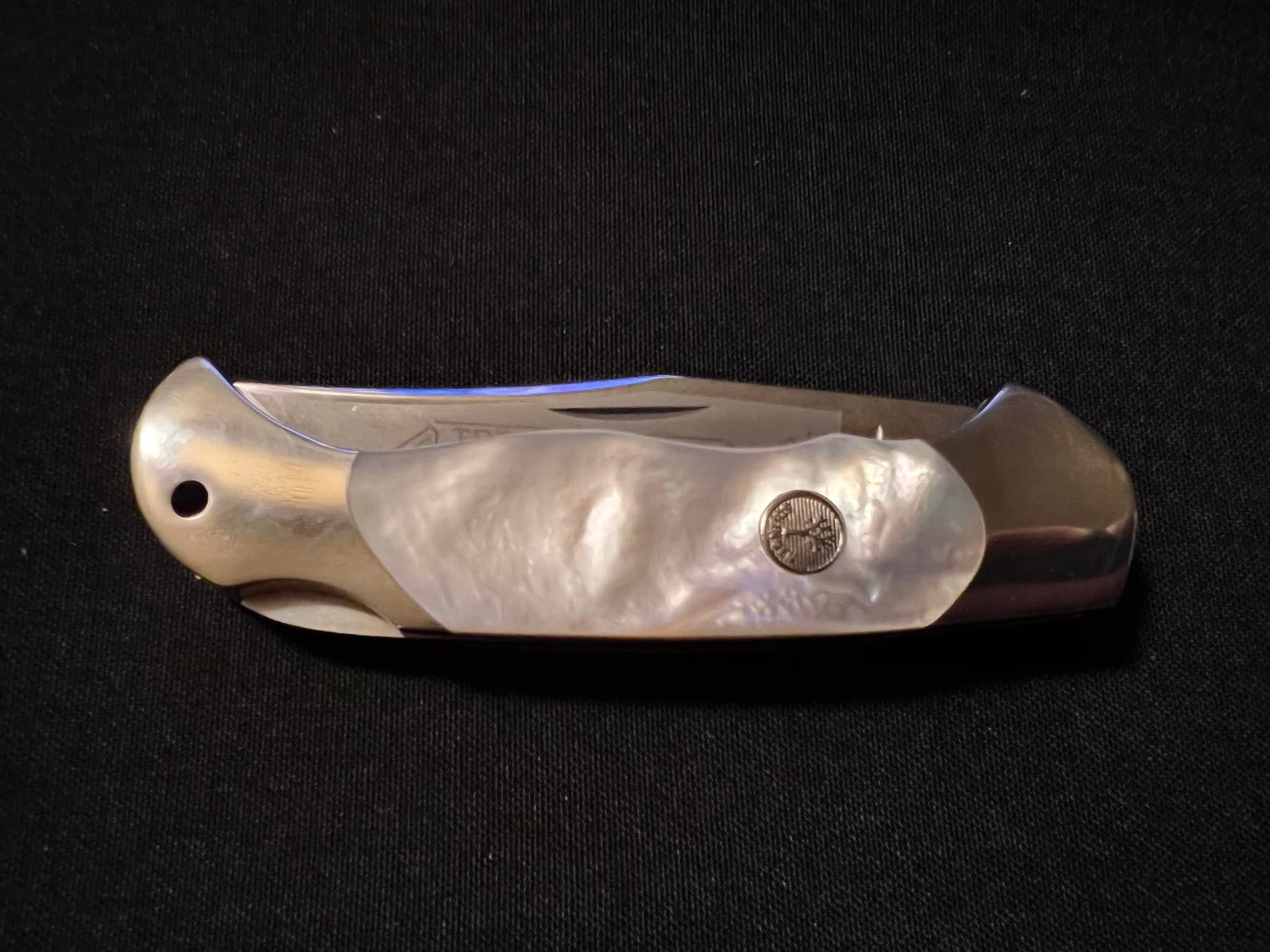 Navaja Böker Scout, Hecha en Solingen Alemania, 7.2 Pulgadas Largo Total, Cachas de Madre Perla, Acero 440C, Nueva sin caja.