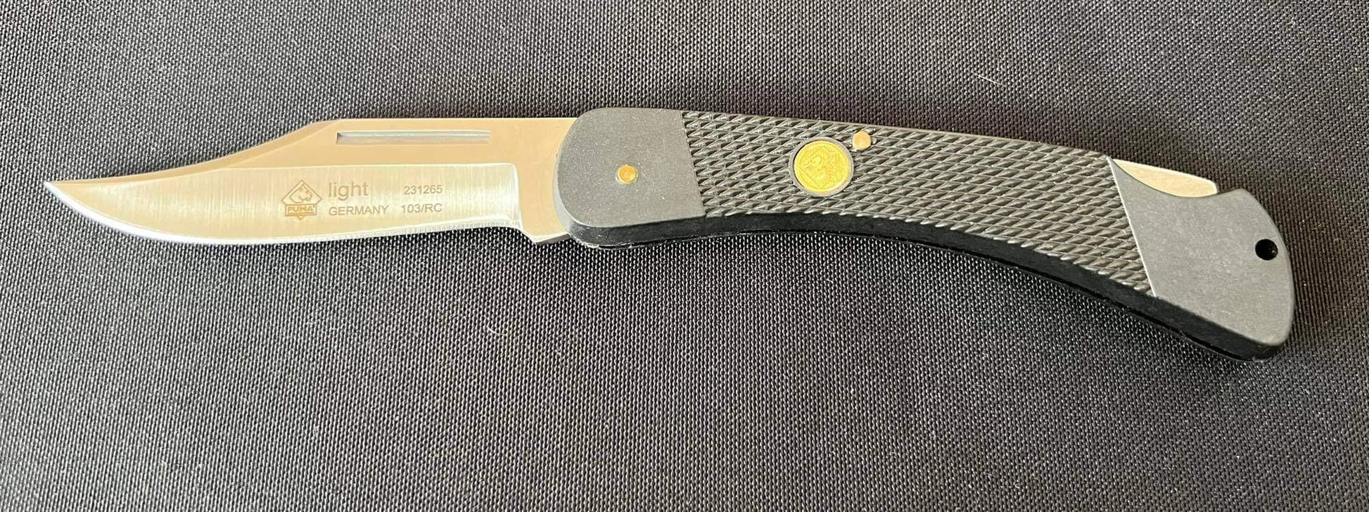 Navaja Puma Light, 7.5 pulgadas largo total. Cachas sintéticas, acero inoxidable, muy ligera, nueva sin caja.