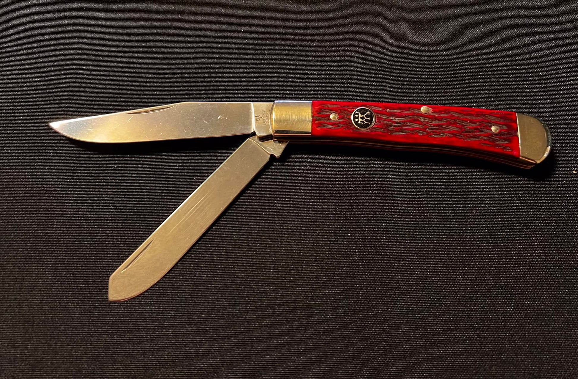 Navaja Trapper J. A. Henckels, 7.5 pulgadas largo total, Cachas de Hueso, Hecha en Solingen Alemania, Acero Inoxidable Acabado Espejo, nueva sin caja.